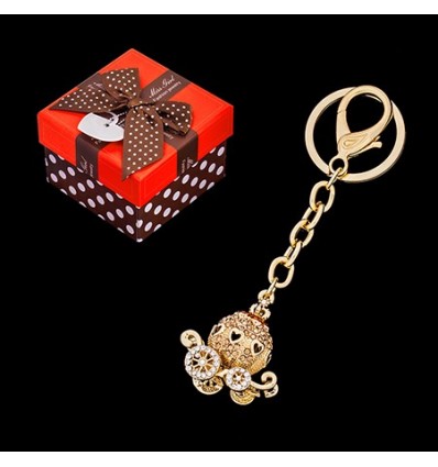 Модерен дамски ключодържател с кристали. Подходящ аксесоар за дамска чанта и раница. Визията се допълва от приказна каляска, покрита с искрящи бели кристали. Ключодържателят е с дължина 11см. Цената включва луксозна подаръчна кутия с размери 8,8см. х 8,8см., височина - 6см. Прекрасен подарък за любим човек.