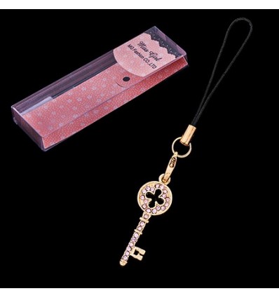 Модерна верижка за GSM. Подходящ аксесоар за GSM, дамска чанта и раница. Изображение на малко ключе, обсипано с кристали. Верижката е с дължина 10 см. Цената включва малка кутийка. Прекрасен подарък за любим човек.