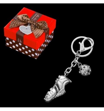 Модерен ключодържател с кристали. Подходящ аксесоар за чанта и раница. Ключодържателят е с формата на спортна обувка в комбинация с футболна топка, обсипана с кристали. Ключодържателят е с дължина 12,5см. Цената включва луксозна подаръчна кутия. с размери 8,8см х 8,8см, височина 6см.Прекрасен подарък за любим човек .