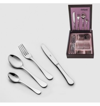 Материал: стомана 18/10 ,дебелина 2,50 мм. Комплектът съдържа 6 лъжици/супа/ , 6 вилици,6 ножа и 6 десертни лъжици