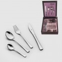 Материал: стомана 18/10 ,дебелина 2,50 мм. Комплектът съдържа 6 лъжици/супа/ , 6 вилици,6 ножа и 6 десертни лъжици