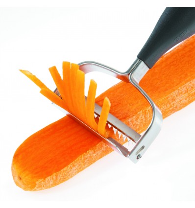 Резачка с висококачествено стоманено и специално назъбено острие за ефективно нарязване на жулиени на моркови, краставици и репички.