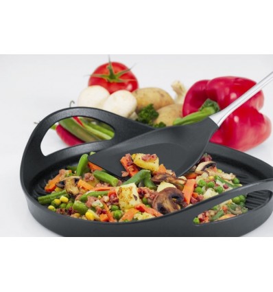 Изключително плоската шпатула с устойчиви ръбове е идеална както за загребване на резени месо или задушени зеленчуци, така и за обръщане на омлети, пържени яйца и кюфтета.