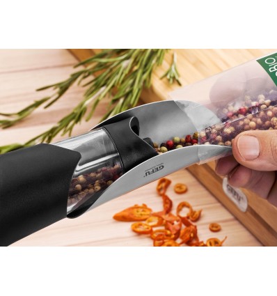 Тази умело проектирана мелничка за подправки Gefu е с много функции.