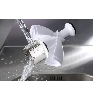 Изключително остри ножове за фино рязане на зеленчуци, плодове, зелени подправки и др. Може да се разглобява за лесно почистване.