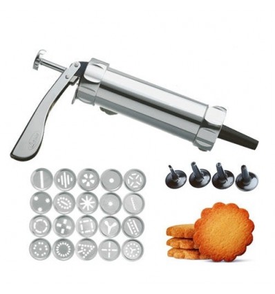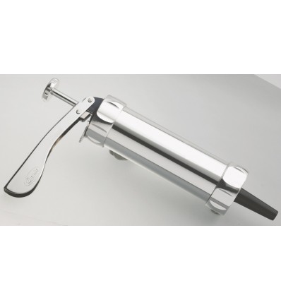 GEFU Сладкарски шприц - метален• Материал: алуминий• Размери: 26,5 x 15,5 x 5,4 cm Аксесоари: • 20 дизайн шаблонни дискове, изработени от алуминий• 4 дюзи с различни мотиви от ABS пластмасаПроизводител: GEFU / Германия