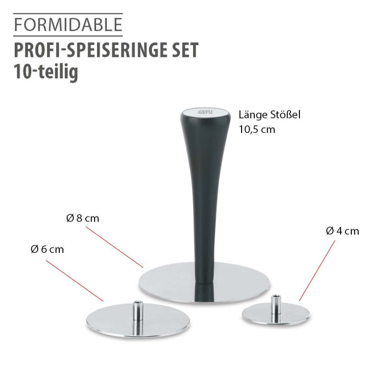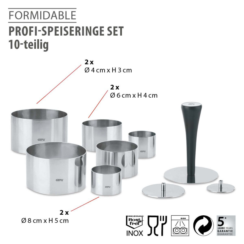 Пръстени с три различни размера Ви помагат да украсите голямо разнообразие от хранителни продукти – било то предястия, основни ястия или десерти.