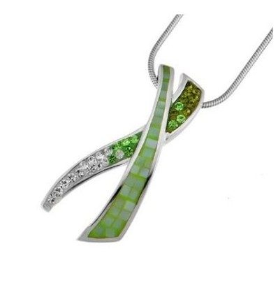Колие “Setting“ - родий + зелен кристал
