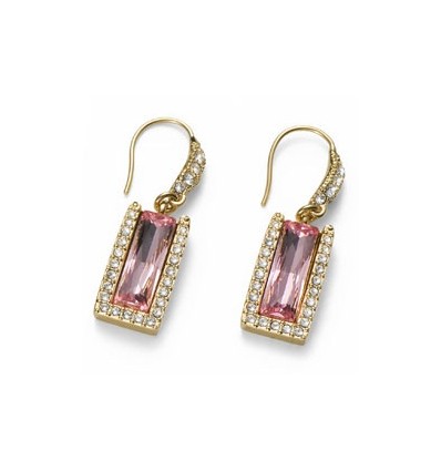Дамски обици "Fence" - Gold  са красиви и елегантни, съобразени с най-модните тенденции! Те са с компактна дължина 2.0 см и са инкрустирани с голям и внушителен розов кристал, заобиколен с изчистени Swarovski ® Elements на марката Оliver Weber. Притежават сертификат за качество и произход. Доставят се в луксозна опаковка, кутия или кадифено калъфче.