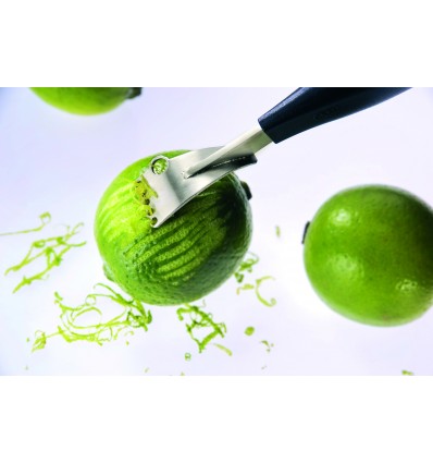 Със своите остриета от неръждаема стомана, прибора за цитруси реже на тънки ивици от кората на портокали, лимони зелени лимони и т.н.
