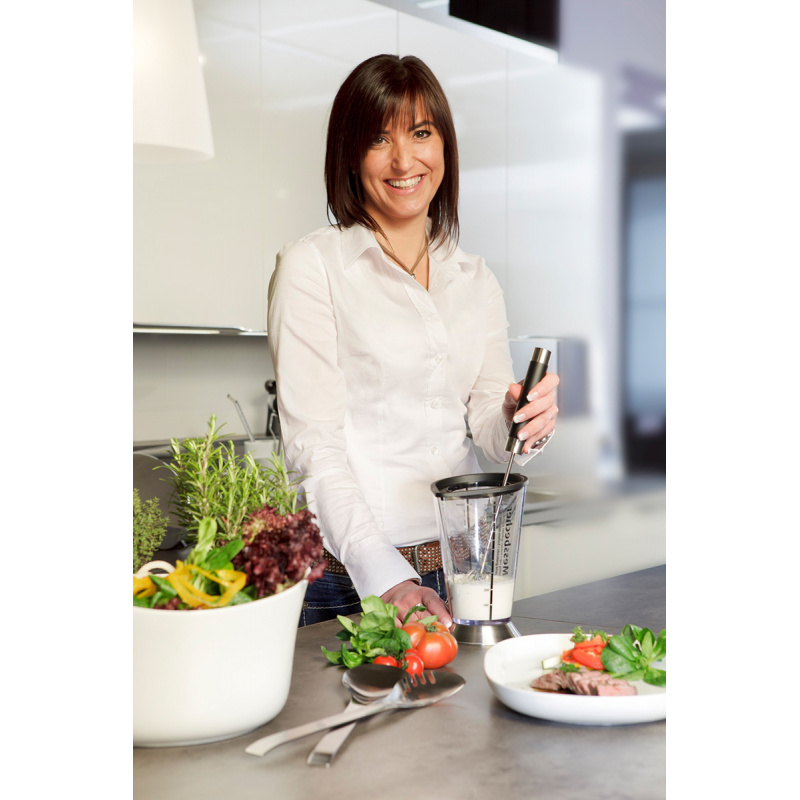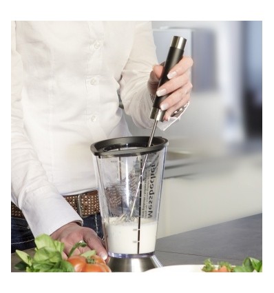 Бързо приготвяне на млечна пяна, сосове, десерти, супи и много повече - без никакви усилия, благодарение на функционалния тел за разбиване. Лесна употреба ниски усилия: просто движете дръжката нагоре и надолу.