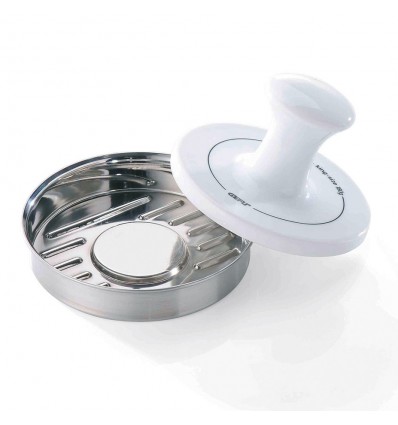 Практична и удобна за употреба преса за кюфтета , шницели, хамбургери. Просто вземете сместа от месо (кайма) поставете я в стоманената форма и притеснете отгоре с порцелановия прибор.Всичко става бързо лесно и вкусно с равномерна форма .Пресата е изработена от неръждаема стомана с порцеланов прибор за оформяне.