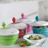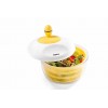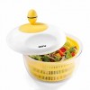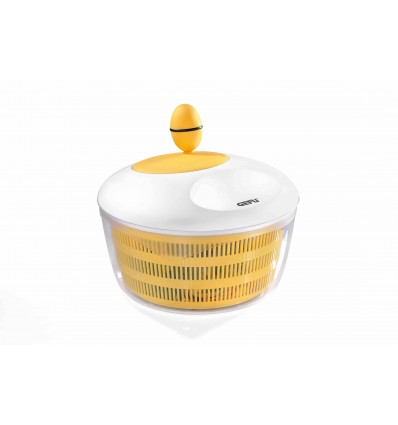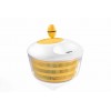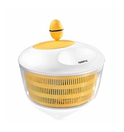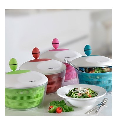 Измийте салатата, поставете я в съда и затворете капака плътно. Започнете да въртите дръжката. Благодарение на плавния механизъм, салатата се изсушава лесно. Пластмасовата цедка може да се използва като гевгир. Съдът е изработен от пластмаса, подходящ за съдо-миялна машина.