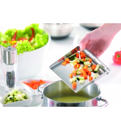 Всичко нарязано - подправки, зеленчуци, месо, колбаси или сирене лесно попадат в тигана или купата бързо и лесно с помощта на лопатката