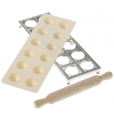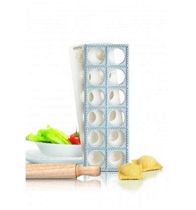 GEFU Комплект за равиоли TASCA - 3 частиЗа едновременно приготвяне на 12 бр равиолиКомплектът съдържа: • Пластмасова приставка за оформяне • Алуминиева форма за равиоли• Дървена точилкаВнимание!!! Не е подходящо за съдомиялна машина!Производител: GEFU / Германия