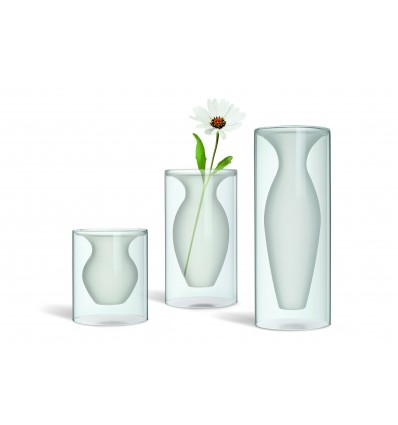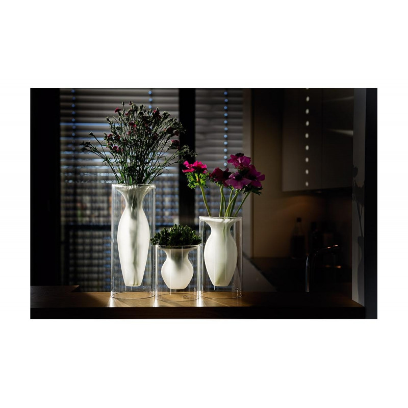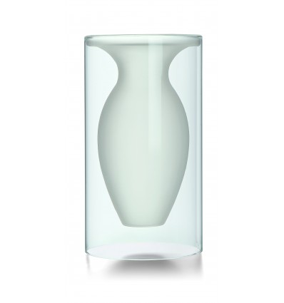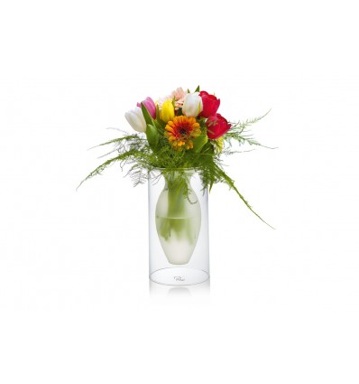 Този уникален дизайн позволява на вазата да левитира в стъклен съд. Зашеметяващият ефект се засилва чрез контраста на ясното и матирано стъкло - събитие за всяко цвете. Esmeralda е ръчно изработена и ръчно сглобена от две части.