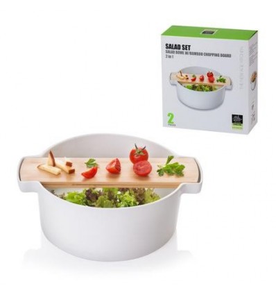 Комплектът включва : купа за салата 29см , дъска-борд за рязане от бамбук