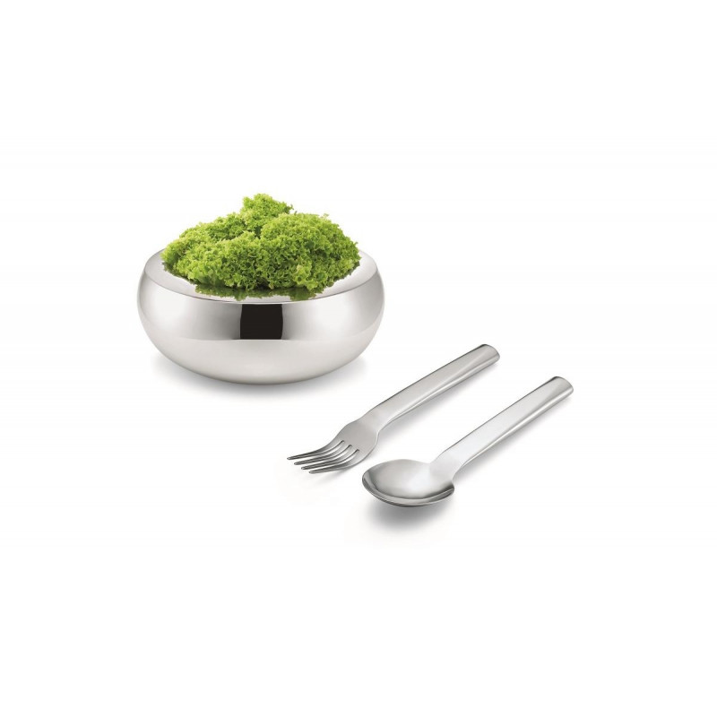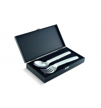 Комплектът е от вилица и лъжица , които са удобни и леки. Изработени от полирана неръждаема стомана и са подходящи за миене в съдомиялна машина. LOLLO се предлага в черна дървена кутия, идеален както за вашия дом, така и като подарък за приятели.