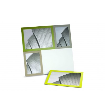 Има четири отделни рамки , снабдени с магнитно фолио, чрез които се закрепят върху метална плоча.