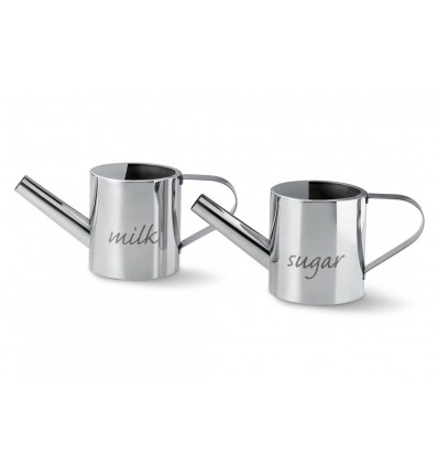Оформени в умален формат като градински лейки, този комплект украсява масата за кафе и следобеден чай. Лазерното гравиране "мляко" и "захар" ясно прогласяват съдържанието им.