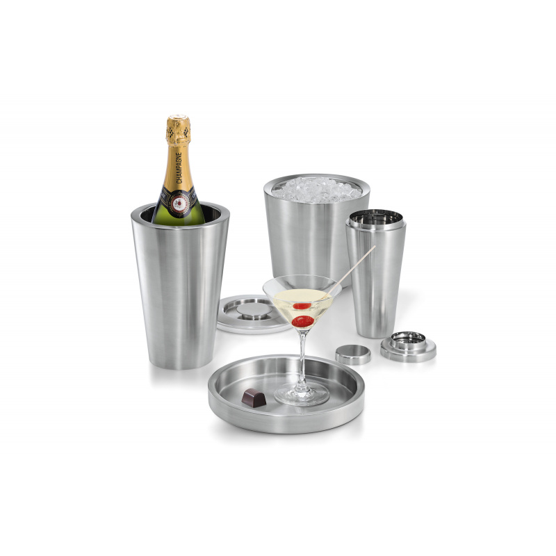 Той е с височина 54 сантиметра . Основата е кръгла и се използва като поднос, следва съд за лед с капак, охладител за бутилки, а най-отгоре е шейкър за коктейли.