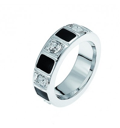 Дамски пръстен "Domino" е с покритие от родий и с редуващи се безцветни и черни