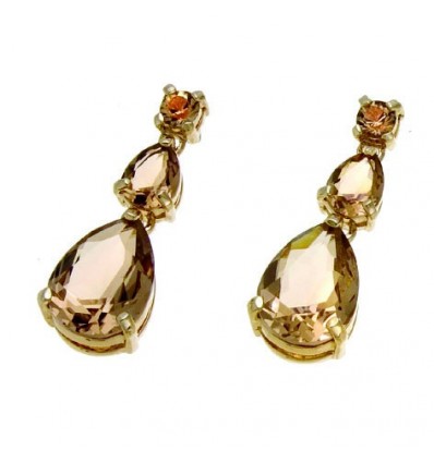 Обици “Pear“ - злато + светъл топаз