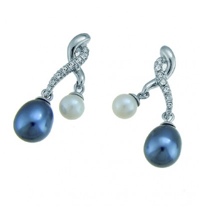Родий + кристали Swarovski ® Elements + бели и сиви перли