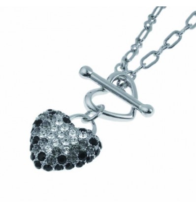 сърце с размер 3,4 см с редуващи се черни и бели кристали. Изработено е от бижутерийн