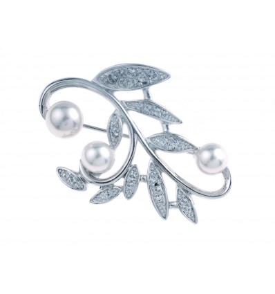 Брошка “Leaf Pearl“ е очарователна дамска брошка, инкрустирана с кристали и перли