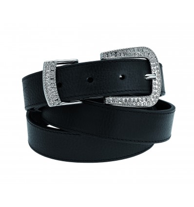 Колан “Ravenna“ - черен L.Елегантен дамски колан от естествена кожа с кристали
