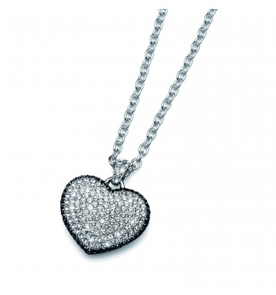 сърце с размер 3,8 см , инкрустирано с черни и бели кристали. Изработено е от бижутерийна