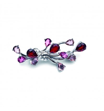 Брошка "Spoty"- rose, red e разкошна брошка с розови, червени и безцветни кристали