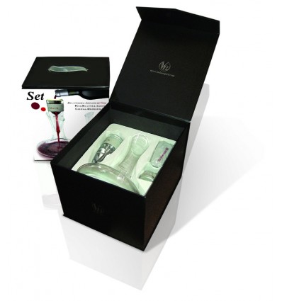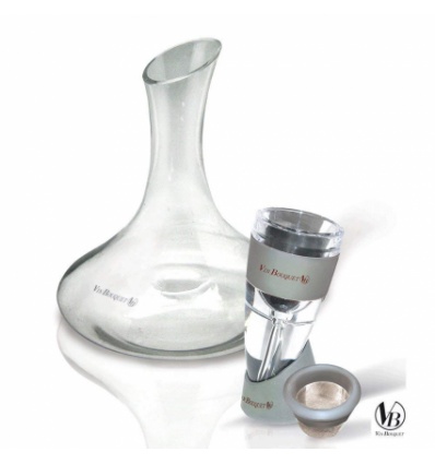 Този VinBouquet сет е чудесен подарък за семейства и любители на виното. Комплектът включва вентилационно устройство с филтър, стъклена кана и аератор, който променя цвета на виното. Декантерът дава кислород, а бутилката се декантира веднага след отпушване.