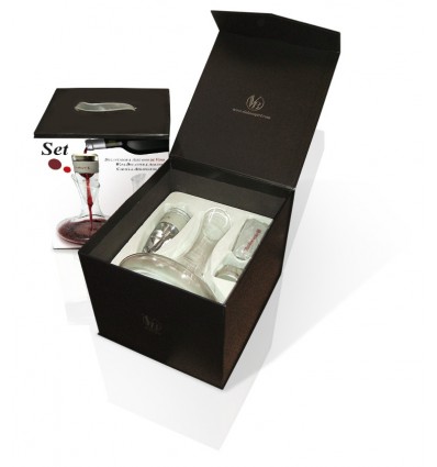 Комплект за ценители на виното, който се състои от Стойка за чаша, аератор, стойка за аератор и калъфче. Функционалност и дизайн съчетани в едно. Прекрасен подарък за любителите на лукса в дома си. кана и аератор, който променя цвета на виното. Декантерът дава кислород,