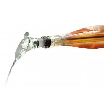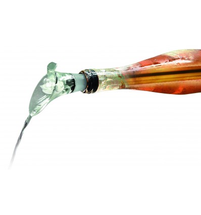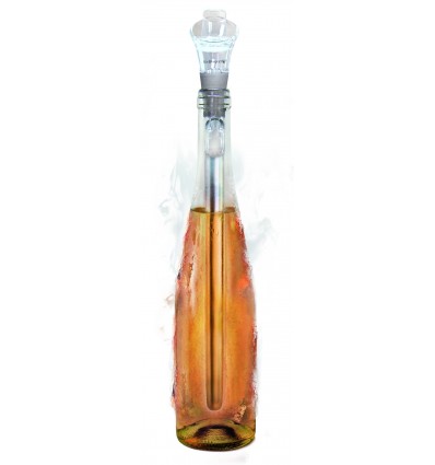 Дизайнът му позволява да се постави директно в бутилката, като в горния си край завършва с наливник с тапа. Така не се налага да го вадите от бутилката, преди да налеете в чаша, а и не капе върху покривката. А тапата позволява да се затвори бутилката и да се прибере заедно с охладителя.
