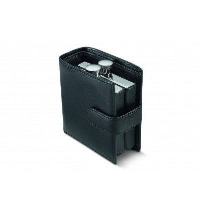 Съвкупност от две елегантни бутилки, скрити в кожен калъф. Калъфът може да се използва и като портфейл.
