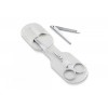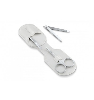 Изберете този модел комплект маникюр в три части. Ножичка за изрязване, пинсета и пила за нокти, са вградени в елегантен калъф от кожа и неръждаема стомана.