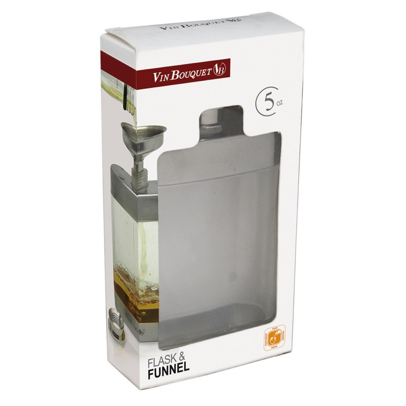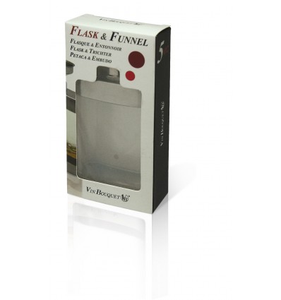 Vin Bouquet Бутилка за алкохол с фунийка • Размери на опаковката: 7.6 x 14.6 x 3 см.• Вместимост: 142 мл.• Тегло: 0,092 кг.Производител: Vin Bouquet, Испания