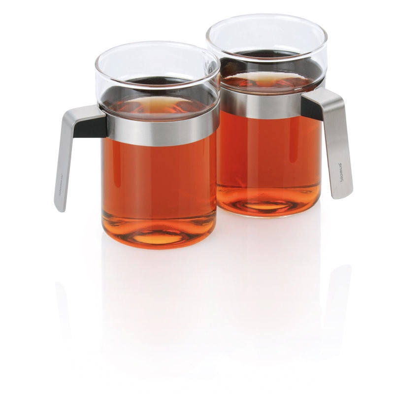 BLOMUS Комплект чаши за чай SENCHA - 2 бр. • Височина: 11 см • Диаметър: Ø 7,5 см • Вместимост: 300 мл • Материал: матирана неръждаема стомана, стъкло, силикон • Производител: BLOMUS, Германия DESIGNER: Flöz Design