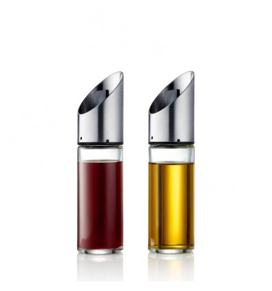 BLOMUS Комплект за олио и оцет LIVO • Височина: 19 см • Диаметър: Ø 5 см • Вместимост: 125 мл • Материал: матирана неръждаема стомана, стъкло, силикон • Производител: BLOMUS, Германия
