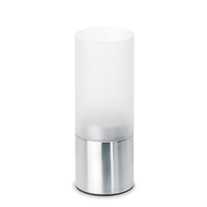 BLOMUS Свещник FARO • Височина: 18,5 см • Диаметър: Ø 7 см • Материал: матирана неръждаема стомана, матирано стъкло • Производител: BLOMUS, Германия