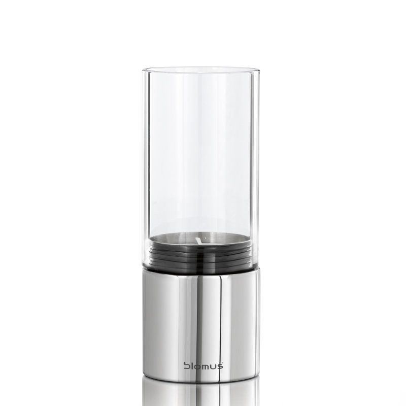 BLOMUS Свещник FARO • Височина: 17,5 см • Диаметър: Ø 9 см • Материал: полирана неръждаема стомана, прозрочно стъкло • Производител: BLOMUS, Германия