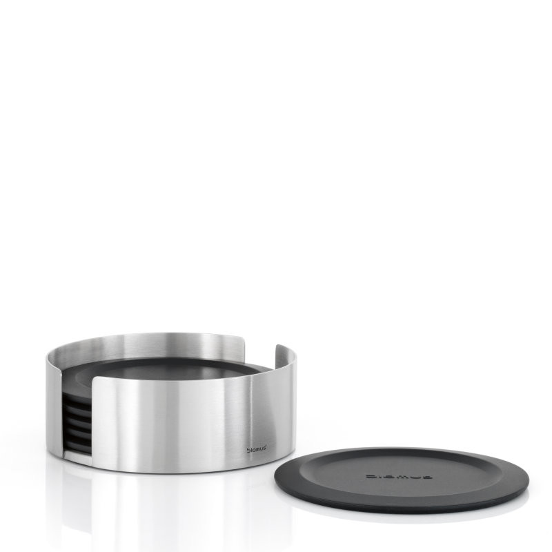 BLOMUS Подложки за чаши / 6бр./ LARETO • Височина: 4 см • Диаметър: Ø 11,5 см • Материал: матирана неръждаема стомана, силикон • Производител: BLOMUS, Германия DESIGN: Flöz Design