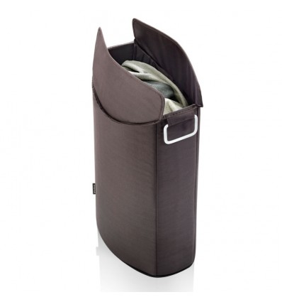 BLOMUS Кош за пране FRISKO • Вместимост: 65 л • Височина: 67 см • Размери: 45 х 28 см • Материал: алуминий, синтетичен текстил, пластмаса • Цвят: мока ( тъмно кафяво)• Производител: BLOMUS, Германия DESIGN: Flöz Design