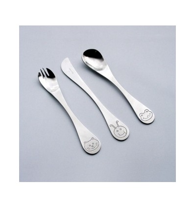 Детски комплект прибори за хранене Herdmar Animals от 3 части, изработени от неръждаема стомана и подходящи за почистване в съдомиялна машина.