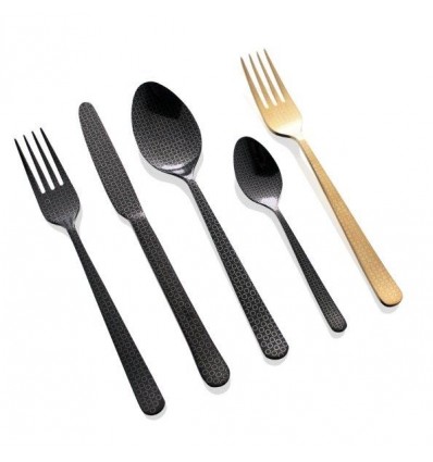 Комплект прибори за хранене Herdmar "OSLO № 12“ - старо злато, гравиран за 6 човека от 24 части.• Изработени от неръждаема стомана 18/10• Подходящи за почистване в съдомиялна машина.• Лазерно гравиран• С 24 каратово златно покритие ( със сертификат от производителя )Комплектът включва:• Нож за хранене: 6 бр.• Вилица за хранене: 6 бр.• Лъжица за хранене: 6 бр.• Лъжичка за чай: 6 бр.Производител: HERDMAR / Португалия