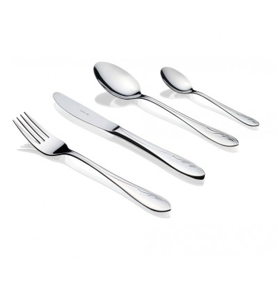 Комплект прибори за хранене Herdmar REBECA за 6 човека от 24 части, изработени от неръждаема стомана и подходящи за почистване в съдомиялна машина.
