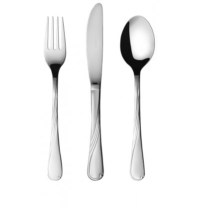HERDMAR Комплект прибори за хранене "SORENTO" за 6 човека от 24 части. • Изработени от неръждаема стомана 18/10 • Подходящи за почистване в съдомиялна машина. Комплектът включва: • Нож за хранене: 6 бр. • Вилица за хранене: 6 бр. • Лъжица за хранене: 6 бр. • Десертна лъжичка: 6 бр. ПРОИЗВОДИТЕЛ: HERDMAR / Португалия