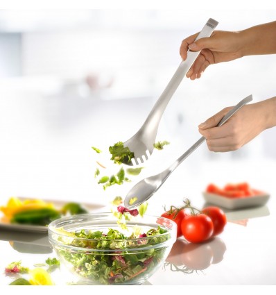 Изработени от неръждаема стомана, с уникален дизайн, тези прибори ще направят приготвянето и сервирането на салати и всякакъв друг вид храна в  чудесна гледка .